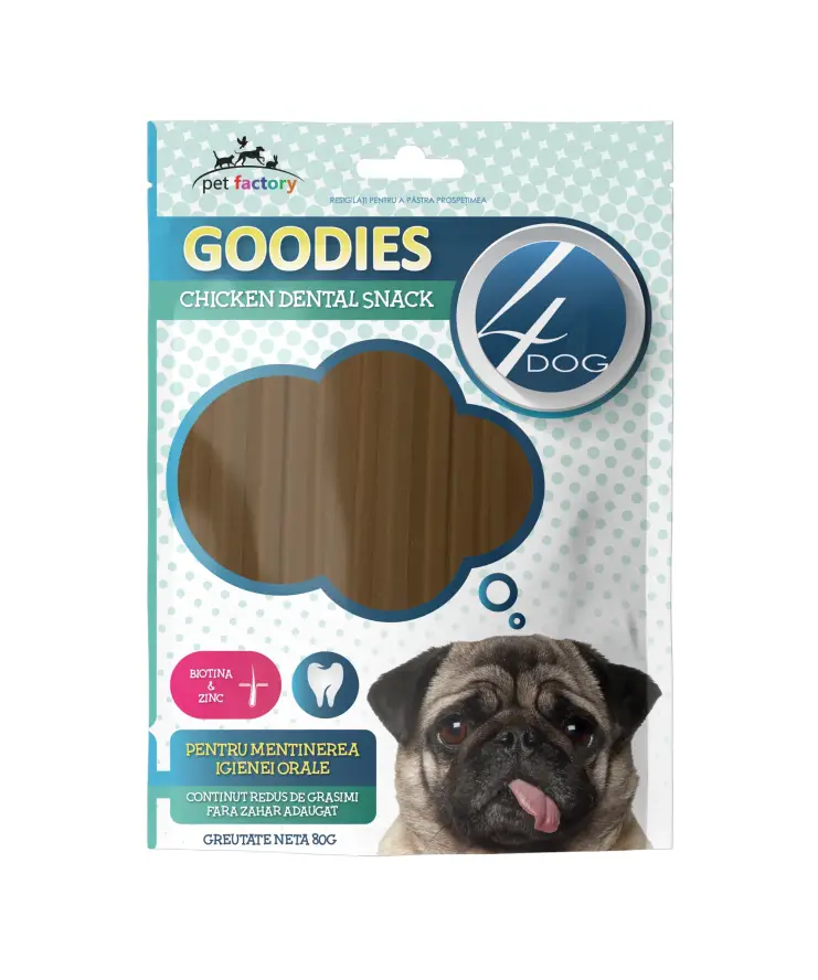 4DOG GOODIES Recompense Caini Dental Sticks Pui si Biotina 80gr