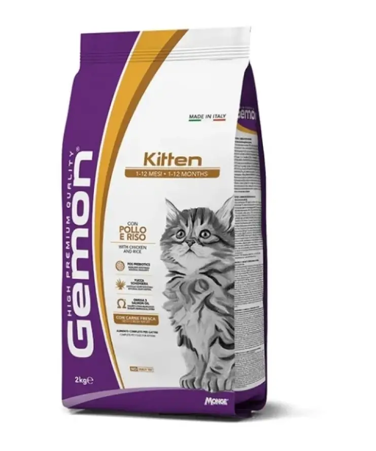 Gemon Kitten cu Pui și Orez este o hrană completă pentru