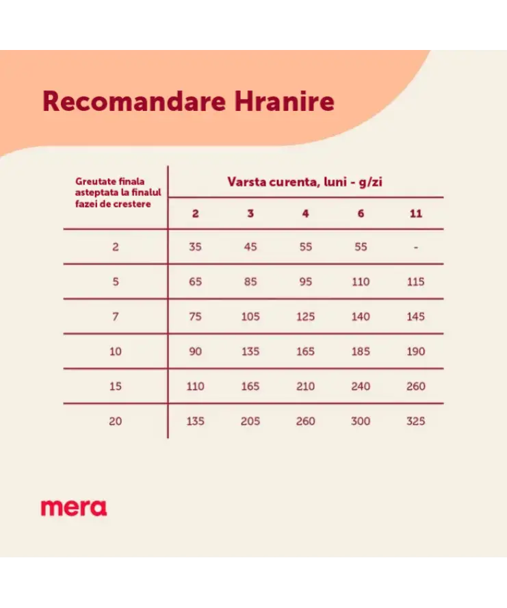 Mera Care Puppy Pui 10Kg contine 83% proteina animala, ideal